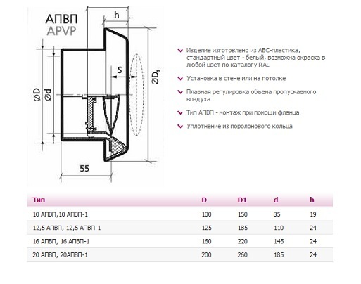 Анемостаты 12,5АПВП приточно-вытяжные с фланцем. Используются в системах принудительной вентиляции. Возможность плавной регулировки количества пропускаемого воздуха путем вращения диска в центральной части анемостата. Имеют фланец для присоединения.
