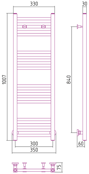 Внешние габариты (высота х ширина х глубина) (мм) : 1007 х 350 х 75